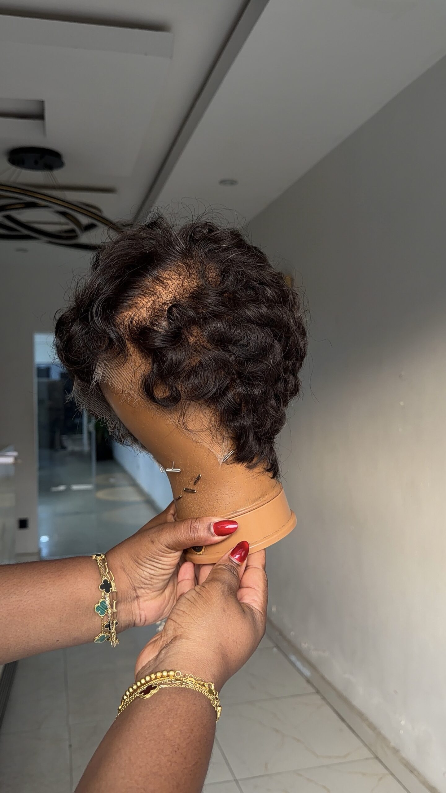 Short hair wig made with raw hair paired with 13*6 Hd lace frontals